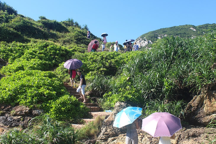 第二天,我起得很早,就為了記錄海邊的冉冉升起的太陽,而大部分同事們因為昨晚戰斗得太晚,還在夢里水鄉。太陽完全升起后,我一個個宿舍的敲門,叫醒了同事們,大家草草解決了早餐,然后一起去參觀了當時周星馳拍攝《魚美人》的拍攝基地,領略了楊梅坑真正讓人回味的無限風光,我在想,當時大導演之所以選擇這里做為拍攝基地,不也是因為這里的美景嗎?除了美景,在我看來,這里的房子也是很有特色的,房子都是小木屋結構,很矮但很別致,和周圍的青山綠水相依,不得不讓人有一種想在此住上一晚的強烈沖動。